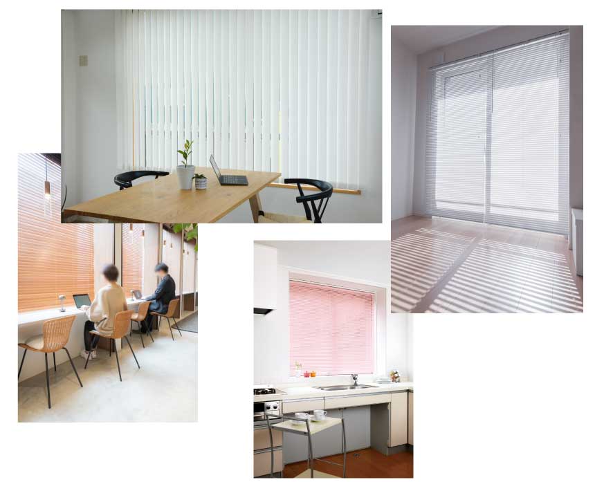 PVCブラインド、バーチカルブラインドなどブラインドを中心に様々な窓回り製品を取り扱っています。ホームセンターなどで販売されているブラインドでは窓枠ピッタリに収めるのはとても難しいことです。